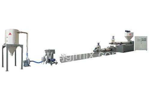 工艺流程 原料分类原料粉碎清洗自动上料投入主机塑化副机挤出水或风冷却自动切粒装袋 规格参数 螺杆直径(mm) 长径比(L/D) 最大挤邮量(Kg/h) 主电动机......